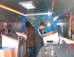 die jungen Gäste im „Infomobil" der bayerischen Metall- und Elektroindustrie vor